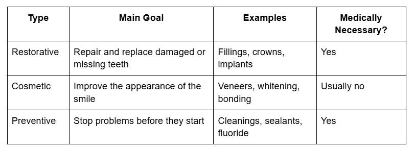 Restorative vs. Cosmetic vs. Preventive Dentistry